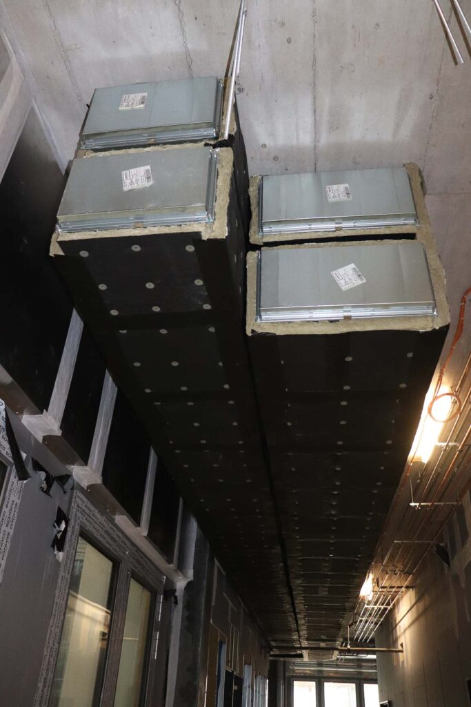 in den Operationsräumen. Nebst den Anforderungen an der Behaglichkeit der Lüftungsanlagen, war ein geregelter Montageablauf und eine exakte Ausführung ein Muss, damit die geforderten Brandschutzanforderungen aufs genauste umgesetzt werden konnten.